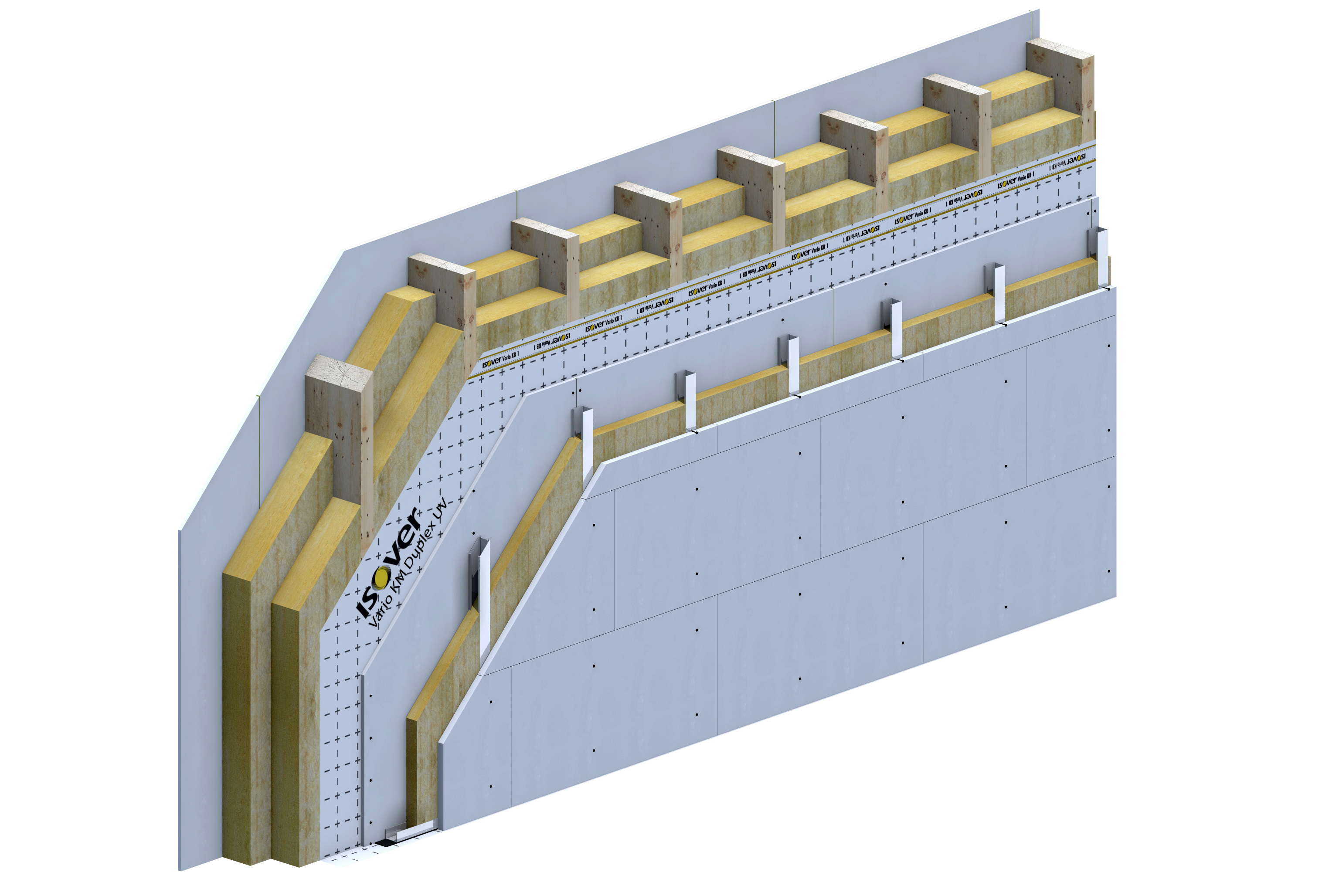 Single stud timber frame wall, gypsum fibre board with installation area, steel channel studs, plasterboard fastened with screws