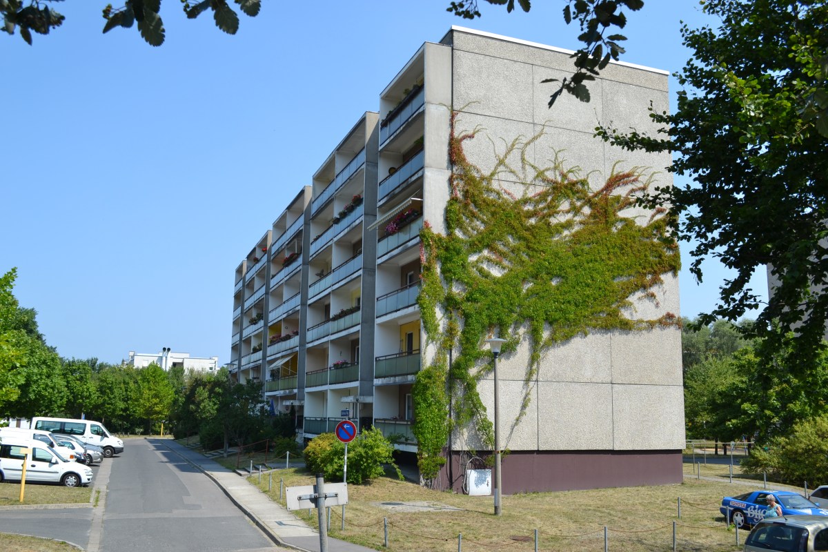 Съществуваща сграда от композицията на “Черешовия двор”, подлежаща на саниране в следващия етап на изпълнение. Интересно е да се допълни, че собствеността е частна и жилищата се отдават под наем (след 89-та общината продава общинските панелни жилища на частни сдружения)
