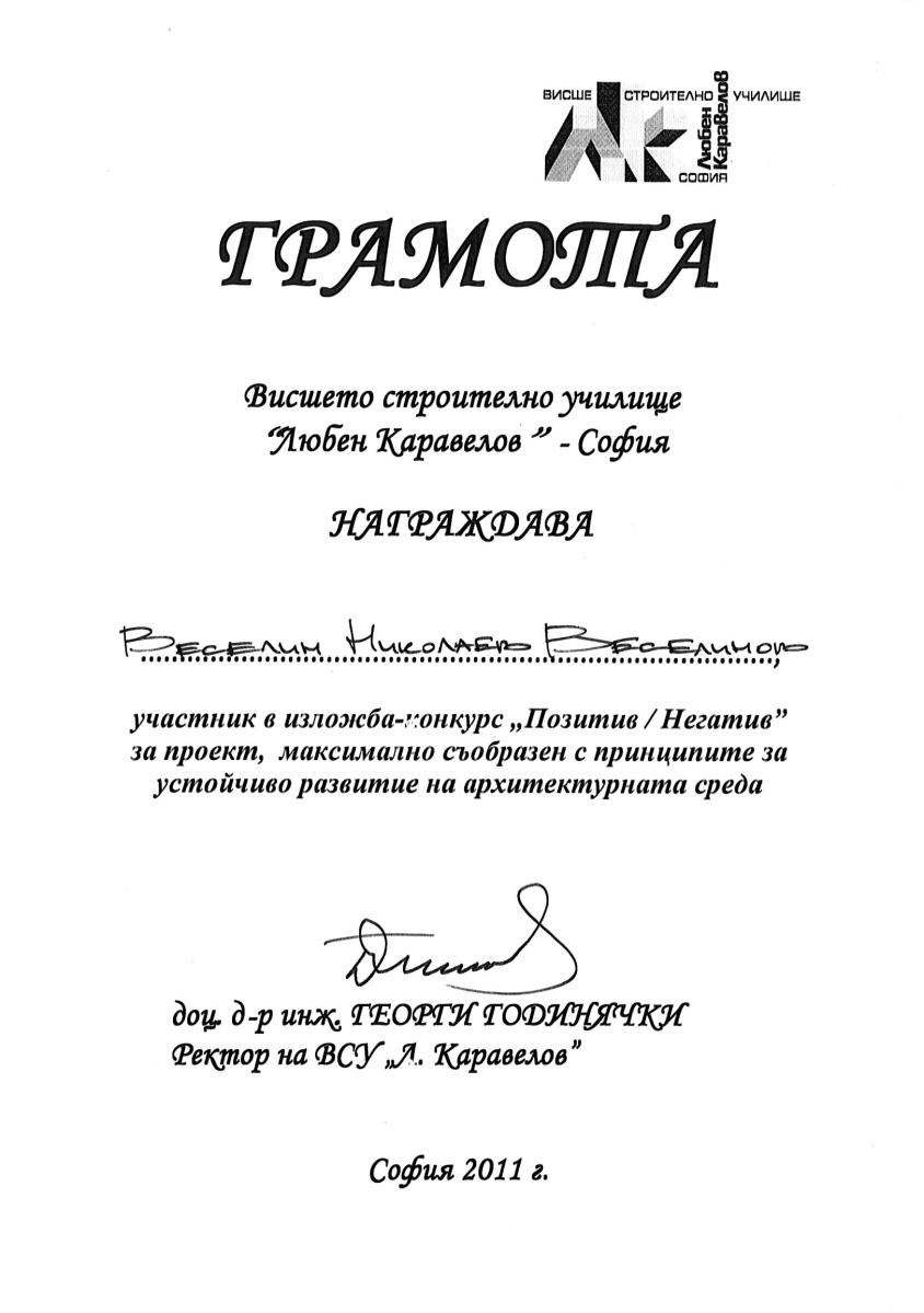 Positive 2011_Award_ Veselin Veselinov_REkute_VSU Published April 14, 2013 at 1624 × 2308 in Awards & References ← Previous Next → Share this:Share Click to share on Facebook (Opens in new window) Facebook Click to share on X (Opens in new window) X Like Loading...